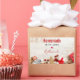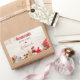 Made with love personalised stickers with a rustic photograph. A light brown wooden board with various Christmas elements along the bottom.
