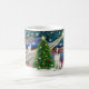 Christmas Magic with a Brittany Spaniel. The star of Bethlehem lights the way for three wise men while Santa and his reindeer fly into the night. A dove and a snowman add to the symbols of the Christmas season.