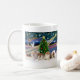 Christmas Magic with four Chow Chows. The star of Bethlehem lights the way for three wise men while Santa and his reindeer fly into the night. A dove and a snowman add to the symbols of the Christmas season.