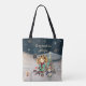 Beautiful Christmas snow hill and dark blue sky TOTE BAG with cute characters and gold elements. Both sides have graphics and text. This cute illustration features the Magic of Christmas and can be great for kids or moms The squirrels, Snowman, a girl and a baby, a fox, mice, an owl, ravens, and a little bird will bring out the right Christmas spirit. All text allows for customisation.