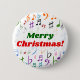This Christmas button design features a pattern involving various music notes and music notation symbols coloured a variety of colours. It features a warm wish of "Merry Christmas!", in red and green coloured text. A button like this could be a fun way to wish somebody a merry Christmas. [~Z0000103]
