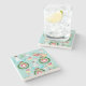 The coasters are gorgeous, a quality feel and heavy weight. They look like a precious archeological find. A rustic stone juxtaposed with a modern floral black and white print. I like the way the print goes slightly imperfect on the cut stone edges giving them a kind-of natural beauty.