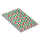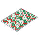 This bold green, white, and red geometric pattern is an original ornamental design perfect for Christmas. Green diamonds with white centres are surrounded by white meanders which angle around them. Red zigzags separate the winding white paths and offset diamonds.