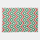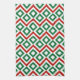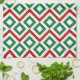 This bold green, white, and red geometric pattern is an original ornamental design perfect for Christmas. Green diamonds with white centres are surrounded by white meanders which angle around them. Red zigzags separate the winding white paths and offset diamonds.
