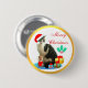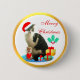 Christmas Merlin cat and golden frame button. Cute Christmas cat standing near gifts wishing a Merry Christmas. Text can be personalised.