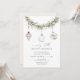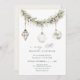 The BASHIR Christmas ornament bridal shower invite features a white background with watercolor pale green garland with white berries and three christmas ornaments in ivory and green, paired with handwritten script and serif fonts in a black and sage green to add visual interest to your winter bridal shower invites. This DIY Christmas bridal shower invite sets the tone for your holiday wedding shower.