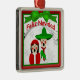 A graphic illustration of Mexican Christmas Caroler Couple with flowing music and the text “Feliz Navidad" on a premium ornament. Original artwork: Copyright Charmaine Paulson