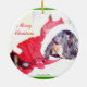 Christmas tree ornaments with an image of little Heidi - Sant's Little Doggy Helper - These ornaments have images on each side and say, "Merry Christmas." Hang them from your fireplace mantle, your X Mas Tree, or any lighting fixture to decorate your home for the holidays. Makes a great gift and wonderful for stocking stuffers. Purchase these in bulk to save money.