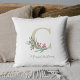 Custom-designed decorative Christmas pillow featuring custom watercolor Christmas mistletoe monogram design.