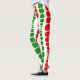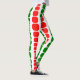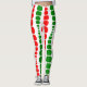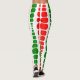 These Christmas leggings have a mid-century modern design of red and green rounded rectangles in increasing and decreasing size running vertically on a field of white.