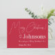 This is a modern, Merry Christmas design. It is in festive red and white. It has the message, "Merry Christmas! from the Johnsons", "We wish you a Merry Christmas & a Happy New Year!" in white stylish typography script. To personalise, simply add your name in the personalise this text box. Here you can also change the rest of the text if you want to. Check out the design editing tool to change the colour or font. Perfect for sending to your friends and family this holiday season! Merry Christmas! For help with personalisation, matching products, or for a custom design email: ursuladawnmoon@gmail.com