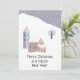 Modern whimsical church and house in a winter setting with Christmas message on both front and back - perfect for over the miles or from our house to yours Christmas message.