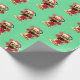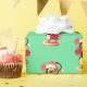 Christmas baubles on green background with a cute monkey wearing a Santa hat.