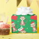 Christmas Monkey Santa Hat Pattern Red Green Wrapping Paper
