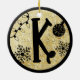 Christmas Monogram Letter K Black Gold Glitter Ceramic Ornament
