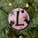Christmas Monogram Letter L Black Pink Glitter Ceramic Ornament