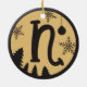 Christmas Monogram Letter N Black Gold Ceramic Ornament