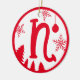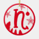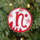 Christmas Monogram Letter N Red White Ceramic Ornament