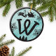 Christmas Monogram Letter W Black Blue Glitter Ceramic Ornament