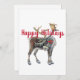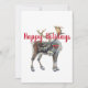 Watercolor moose with festive ribbon and holly on his bridle and customisable red "Happy Holidays" text