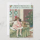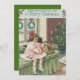 Time to celebrate the holidays. This vintage Christmas print depicts a little girl's Christmas morning. It includes a Christmas tree, wreath, doll, and other presents.