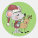 A Christmas mouse in a Santa stocking cap with the red nosed reindeer on holiday t-shirts, sweatshirts, cards, mugs, tote bags, keepsake ornaments, keychains, wall clocks, pillows, and more.