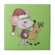 A Christmas mouse in a Santa stocking cap with the red nosed reindeer on holiday t-shirts, sweatshirts, cards, mugs, tote bags, keepsake ornaments, keychains, wall clocks, pillows, and more.