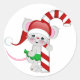 This cute Christmas mouse in Santa hat holds a very large Candy Cane on this cute holiday design.