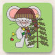 An adorable Christmas mouse in a red stocking cap puts the string of Christmas lights on the holiday tree on mouse theme holiday T-shirts, mugs, cards, stickers, tote bags, magnets, keychains, keepsake ornaments and boxes, wall clocks, and other holiday items.
