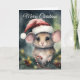 A cute watercolour Christmas mouse in a Santa hat and wearing a scarf