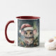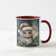 A cute watercolour Christmas mouse in a Santa hat and wearing a scarf