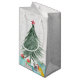 Cute mouse with Santa Claus hat, pine tree, and holiday gifts in a watercolor effect.