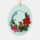 Cute brown mouse on a Christmas wreath. Ornaments, poinsettias, and blue Celtic knot work on the Christmas wreath.
