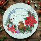Cute brown mouse on a Christmas wreath. Ornaments, poinsettias, and blue Celtic knot work on the Christmas wreath.