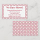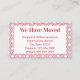 You can personalise the white text with your name and new address. At the top, you can customise the text that says "We Have Moved". This Christmas moving announcement has a traditional red and white pattern. All text can be edited or deleted.