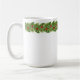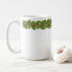 Christmas holiday ceramic coffee mug is shown with a festive holiday fir garland with holly and red berries print.