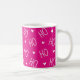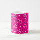 Cute, girly pink holiday Christmas mug featuring the phrase “ho ho ho” with hearts. Hot coquette design with pink background, modern white ho ho typography and cute minimalist hearts pattern. Perfect as girly pink holiday décor, stocking stuffer or christmas gift for her, friends, family, co-workers, santa or mrs santa. This, coquette modern mug spreads Christmas cheer with a touch of minimalist charm and is great for enjoying morning coffee, hot cocoa, or winter tea.