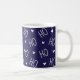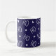 Cheerful navy holiday Christmas mug featuring the phrase “ho ho ho” with hearts. Blue background with modern white ho ho typography and minimalist festive hearts pattern. Perfect as festive blue holiday décor, christmas gift for for friends, family, co-workers or stocking stuffer. Also makes an ideal gift for santa. This blue, modern mug spreads Christmas cheer with a touch of minimalist charm and is great for enjoying morning coffee, hot cocoa, or winter tea.
