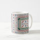 Inspired by the classic 'Ugly Christmas Jacket' style and traditional Nordic Fair Isle designs, this mug has an intricate, charming design that's perfect for your winter drinks. The pattern combines jumping deer, large, ornate snow stars and geometric borders, in traditional holiday colours: dark red, forest green, and dark blue, against a bright white background.
