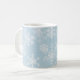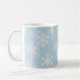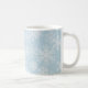 Christmas holiday ceramic coffee mug shown with a festive snowflakes print.