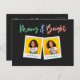 Christmas multi photo bright modern colourful neon holiday postcard. Colourful neon effect Merry and bright script with space for two vintage style photographs and space for Christmas wishes of a year in review on the back.