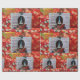 sitting on Red Christmas Present's . That's on Christmas Wrapping Paper .