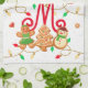 Christmas Name Monogram Custom Gingerbread Red Tea Towel