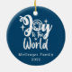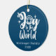 Add your family name and year to this Nativity Scene Joy to the World ornament or personalise it for friends, family, coworkers, staff or students as a thoughtful Christmas gift. Express the true reason for the Christmas season celebrating the birth of Jesus. Blue and White Christmas Nativity scene announcing Joy to the World.