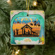 Vibrant Design: The striking contrast of the black silhouettes against the teal borders and orange/yellow sky makes this piece a colorful focal point on any Christmas tree.