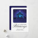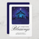 Personalise the front of this Christmas card by adding your family's name and add your custom holiday message on back of the card. This religious Christmas card features a traditional nativity scene with "Christmas Blessings" displayed in elegant calligraphy script. Back of card is on a classic blue background that is customisable to any colour of your choice. Easy to customise the text, photo and background colour of the card. Have a blessed and joyful Christmas!