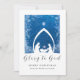 Personalise the front of this Christmas card by adding a custom greeting and your family's name and add your custom holiday message on back of the card. The religious Christmas card features a traditional nativity scene with "Glory to God" displayed in elegant calligraphy script. Easy to customise. Happy Holidays!