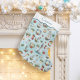 Add a name to personalise this coastal holiday stocking, full of nautical elements such as sailing ships, lighthouses, ship’s wheel, anchors, buoys, starfish and seashells, all decorated for Christmas with holiday sprigs of greenery, berries, poinsettia, and holly leaves.