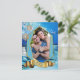 A Blue winter fantasy snow scene with a Geometric gold frame to personalise with your photo.