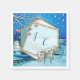 A Blue winter fantasy snow scene with a Geometric gold frame for a winter wedding table decor